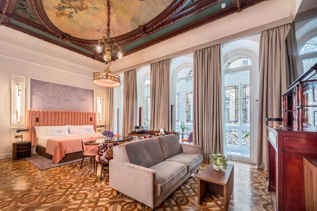 グラナダの旧ロドリゲス・アコスタ銀行は、豪華な「パラシオ・グラン・ビア」へと見事に生まれ変わりました。保存された金庫の扉や窓口ブースなど、ごく一部の細部だけが、王室由来ではなく、かつての銀行だったことをほのめかしています。